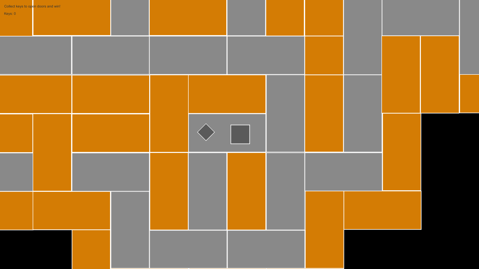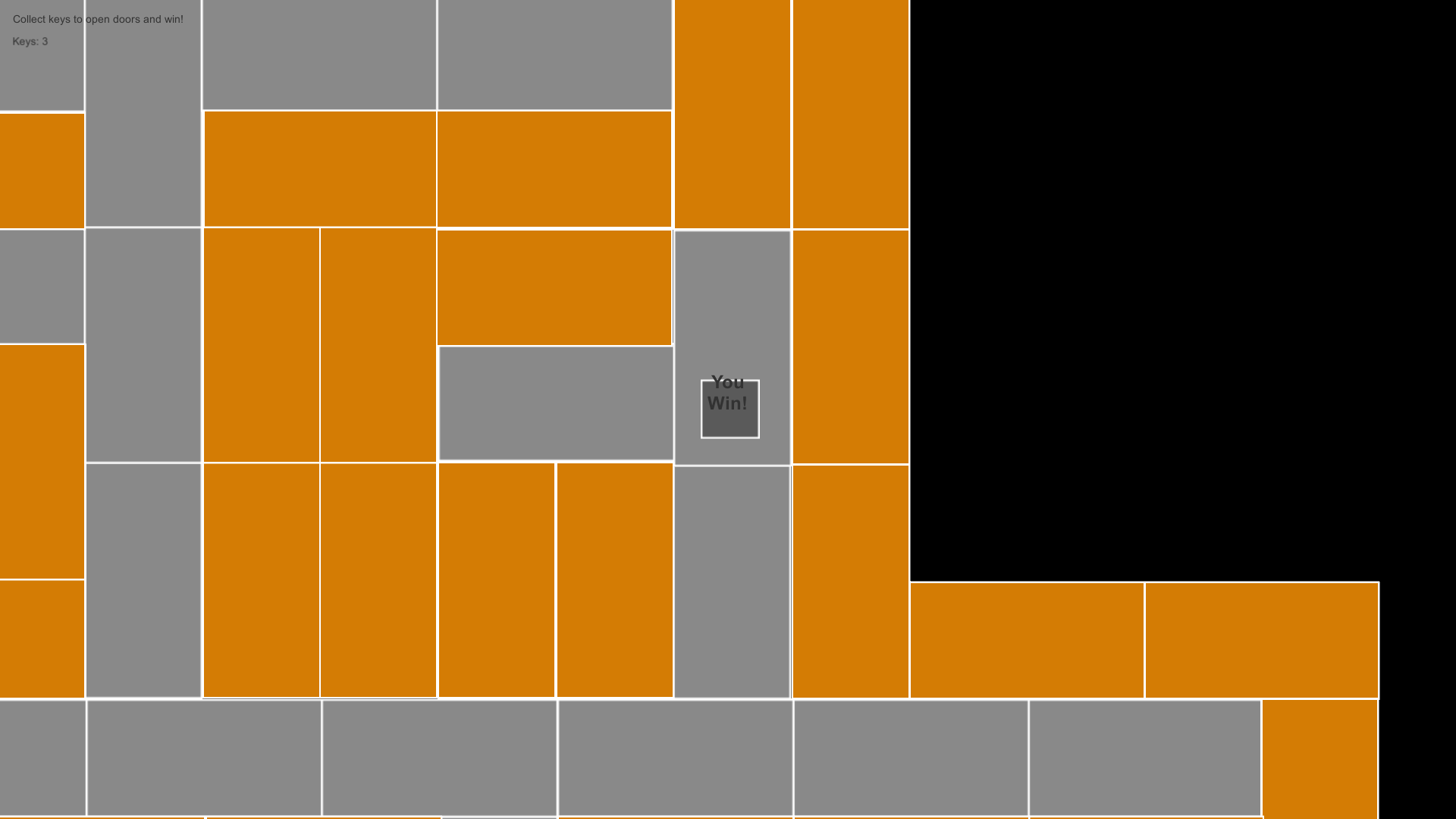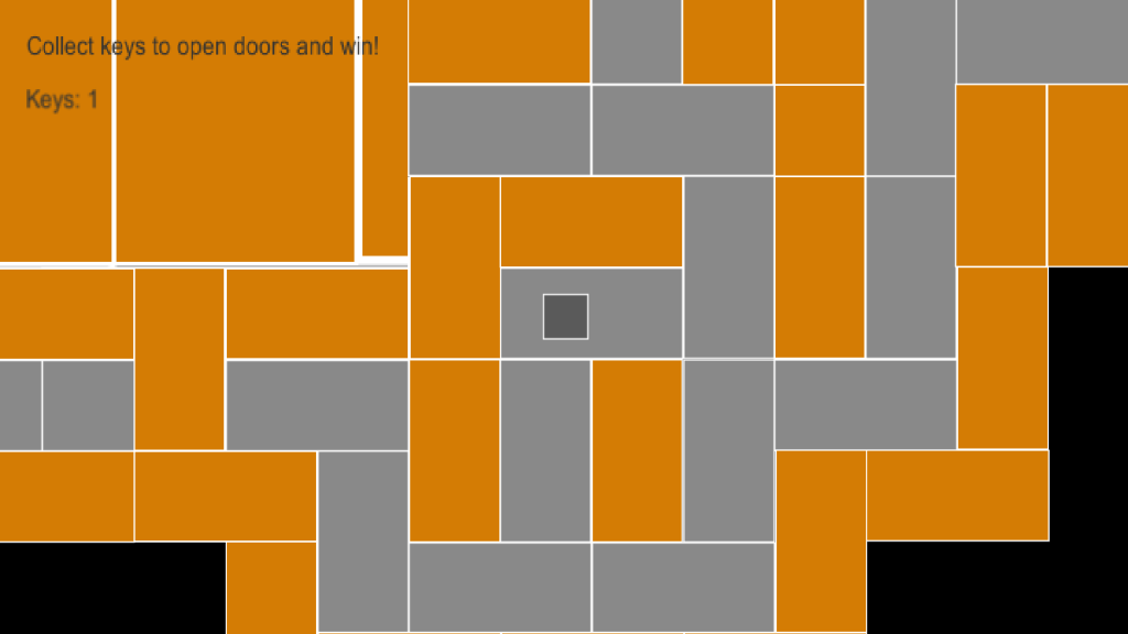 I first began working on digital games in college where I made this simple maze. The goal of the game is to collect the 3 keys hidden around the maze. You start in the center near three hallways, two of which are blocked off by doors. Headed down the first hallway you can find the first key shown above.